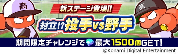 - 新ステージ「対立!?投手VS野手」編では、「パワダイヤ」合計1,500個を獲得できるチャンス。