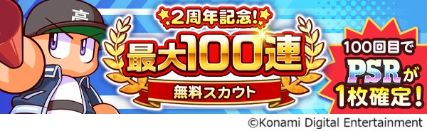 「2周年記念!最大100連無料スカウト」では、最大100連分の無料スカウト券が配布され、100回目にはレアリティ「PSR」のキャラクターが確定で出現する。