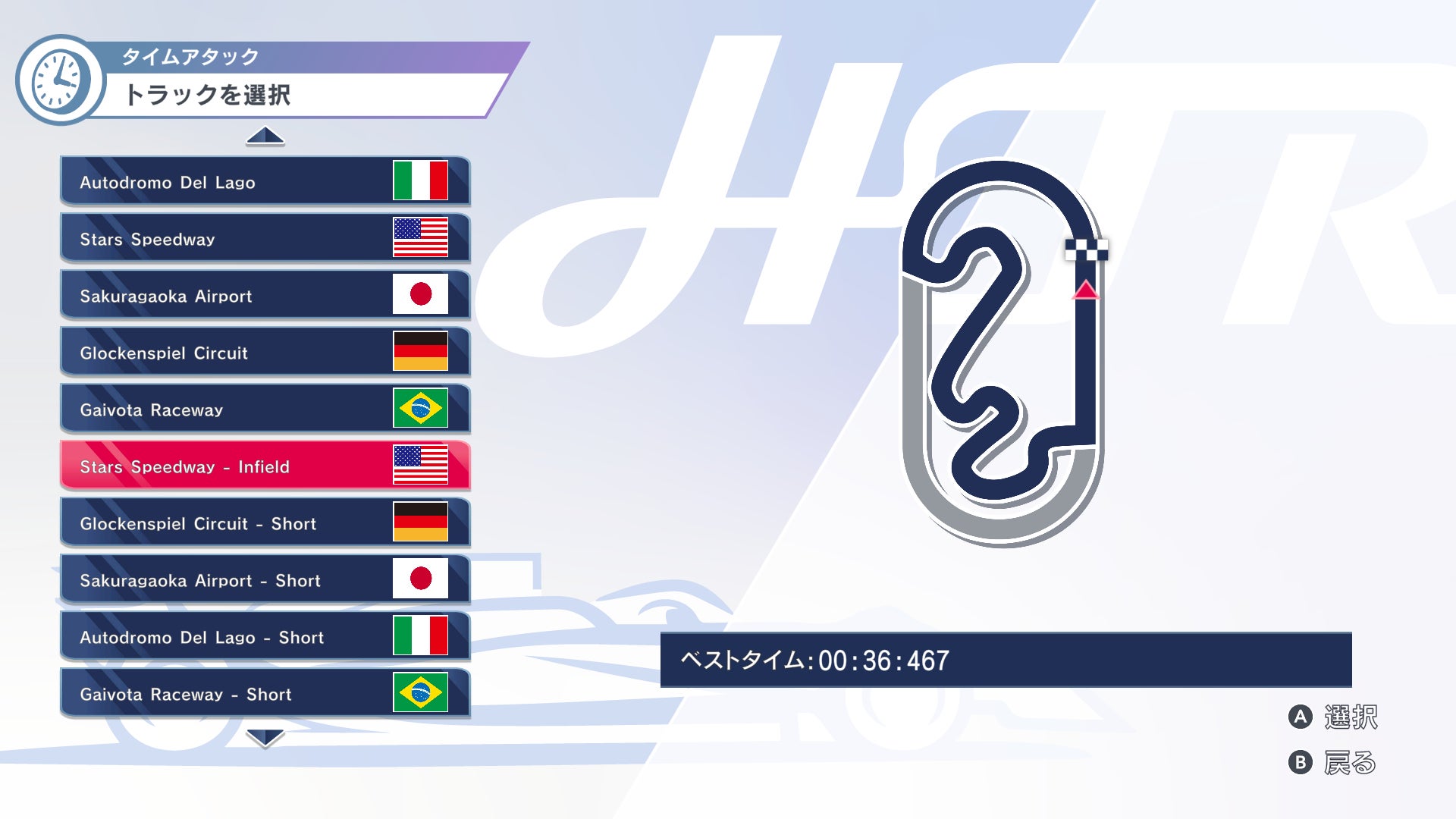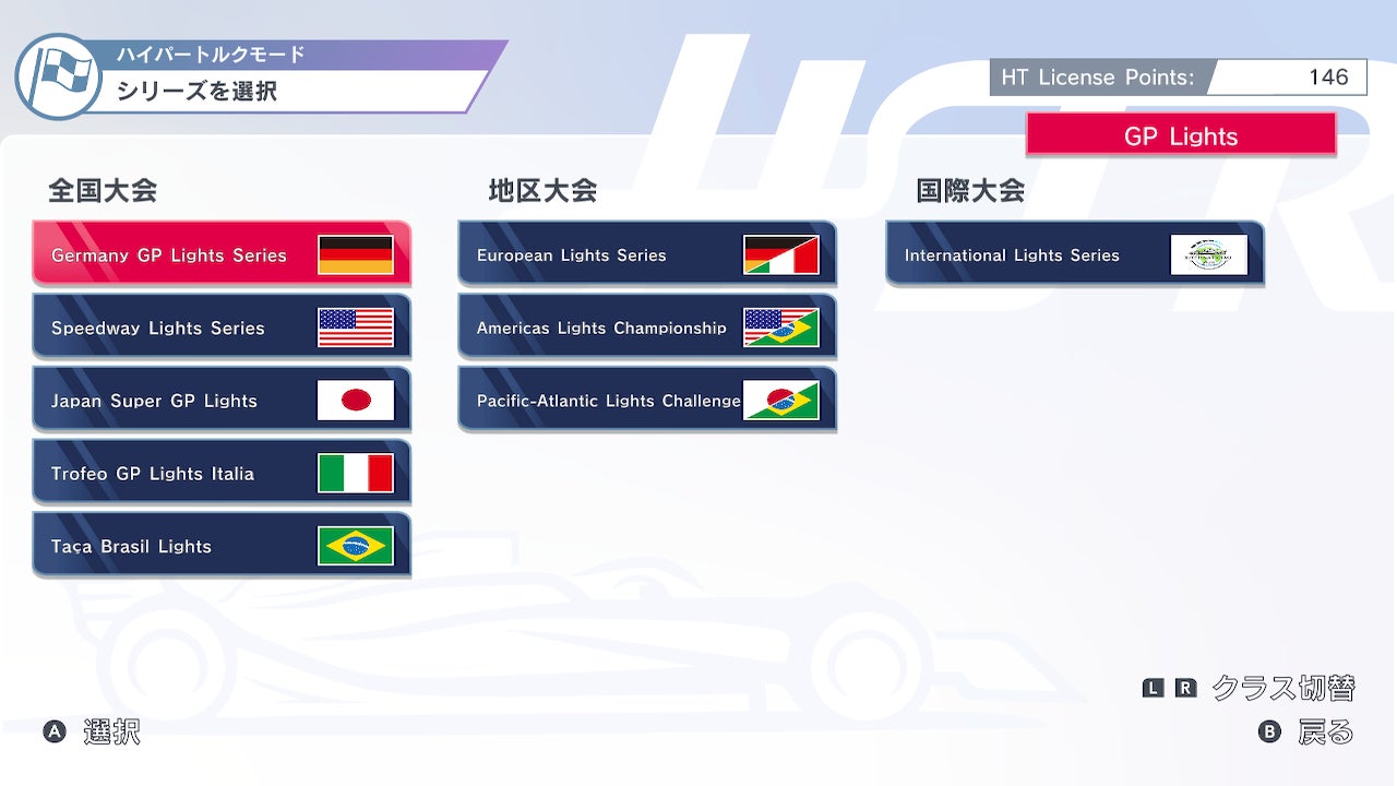 - 各国で開かれる大会に挑戦するモードや、世界中のレーサーとタイムを競うランキングモードがある