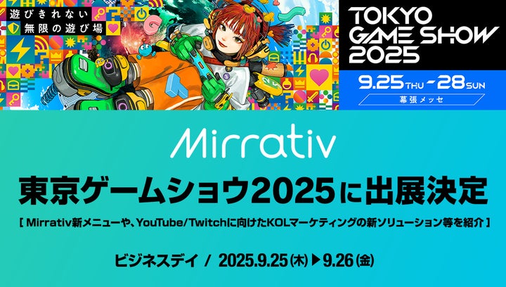 株式会社ミラティブは、2025年9月25日から28日に幕張メッセで開催される「東京ゲームショウ2025」に出展する。