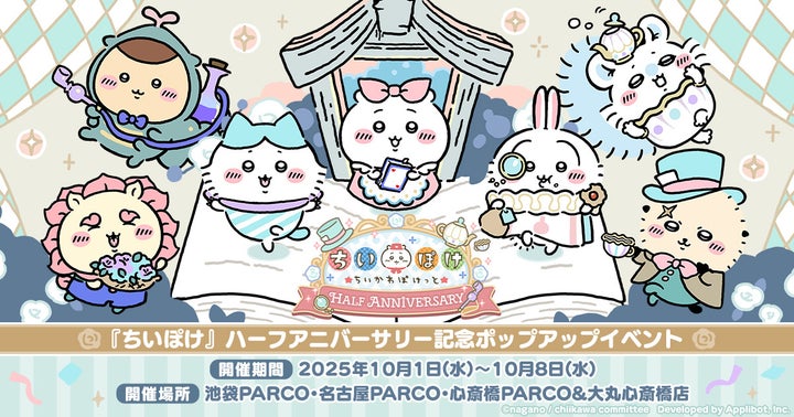スマホゲーム『ちいかわぽけっと』のハーフアニバーサリーを記念し、東京・名古屋・大阪の3都市でポップアップイベントが開催されます。