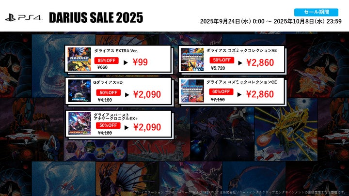 - 『ダライアス』シリーズのダウンロード版タイトルが最大85%オフになるセールが開催。