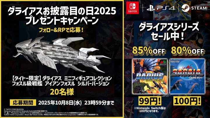 - X(旧Twitter)にて『ダライアス』フィギュアが当たるプレゼントキャンペーンも実施。