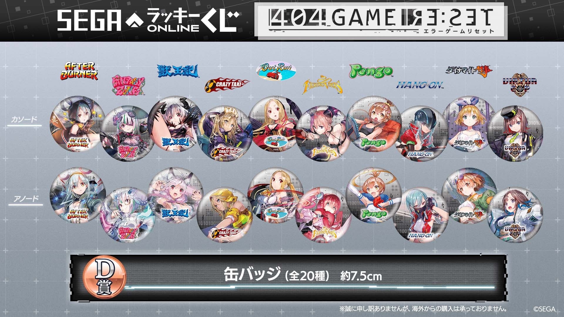 セガは2023年7月28日(金)11時より、セガ ラッキーくじオンライン「404 GAME RE:SET ‐エラーゲームリセット‐」の販売を開始します。