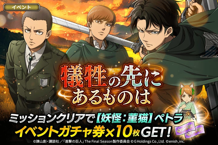 - 「進撃の巨人Brave Order」にて新イベント「犠牲の先にあるものは」開催。