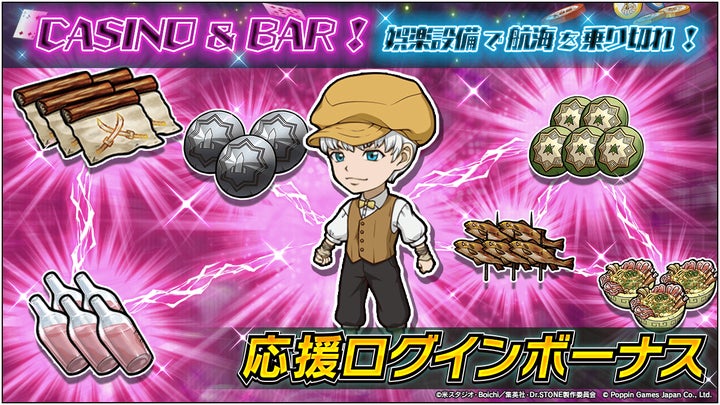- 『Dr.STONE バトルクラフト』にて新イベント「CASINO & BAR!娯楽設備で航海を乗り切れ!」開催。