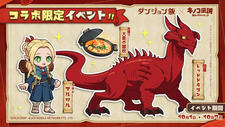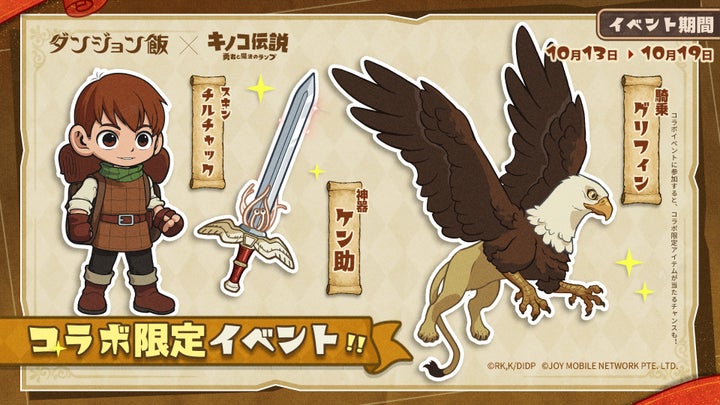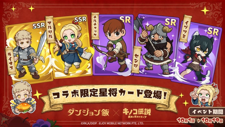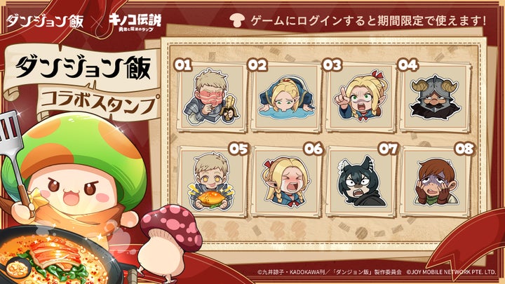 JOY MOBILE NETWORK PTE. LTD.が配信する放置RPG『キノコ伝説:勇者と魔法のランプ』とTVアニメ『ダンジョン飯』のコラボが決定。