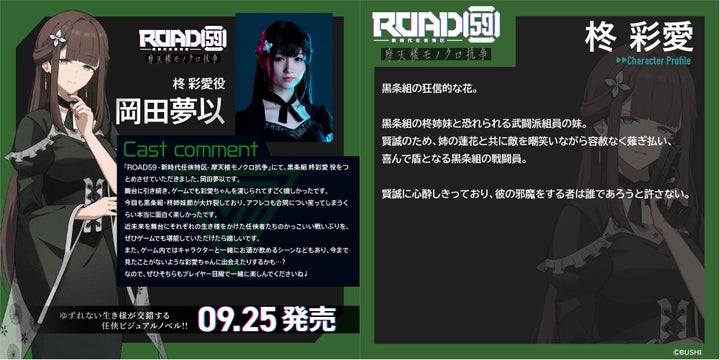 ブシロードより発売されたビジュアルノベルゲーム「ROAD59 -新時代任侠特区- 摩天楼モノクロ抗争」の発売を記念し、出演キャストの井上正大、工藤晴香、岡田夢以の直筆サイン色紙が当たるキャンペーンが開催される。