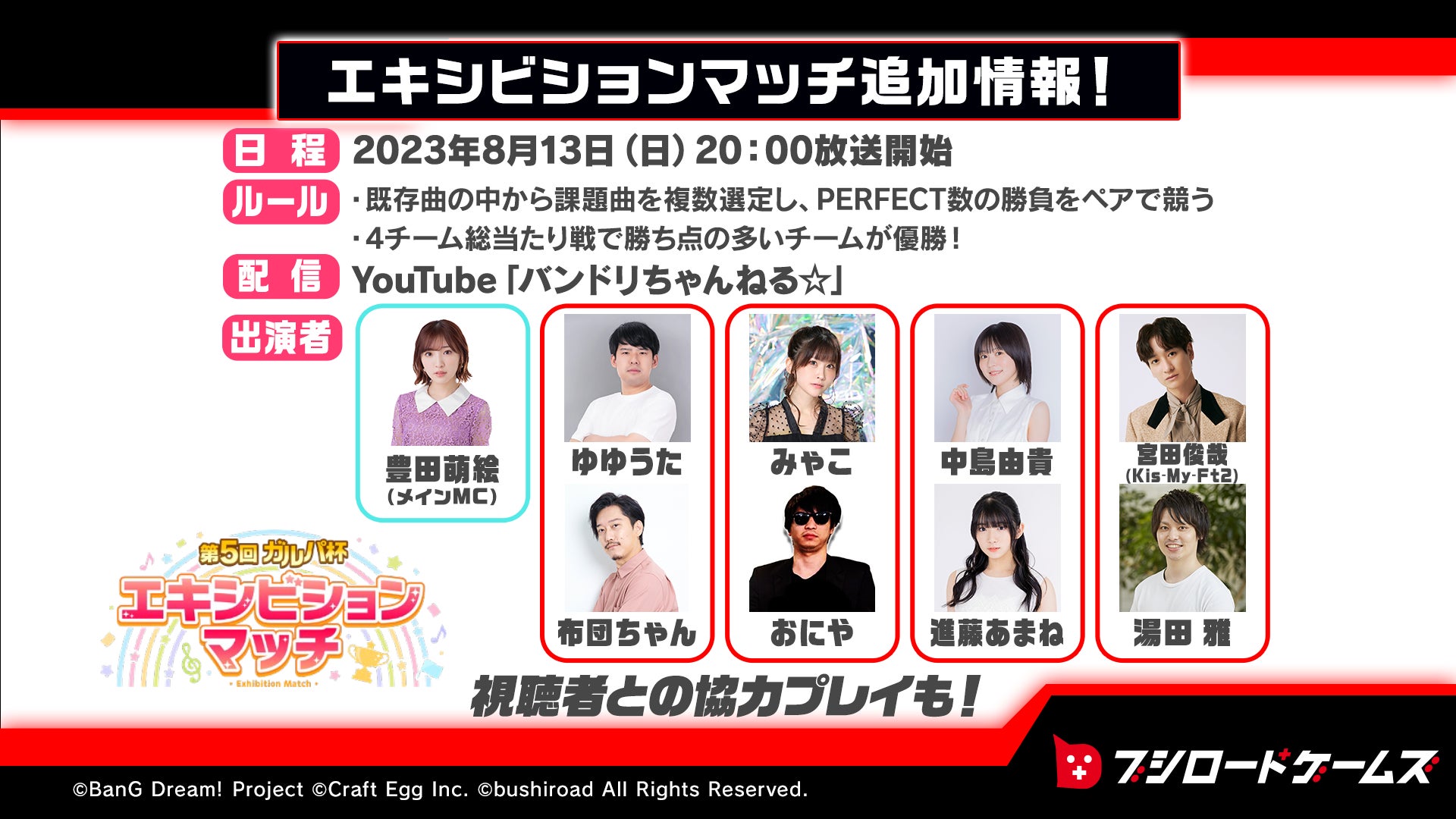 さらに、2023年8月13日には「第5回ガルパ杯エキシビションマッチ」が開催され、課題曲を競うイベントも行われます。