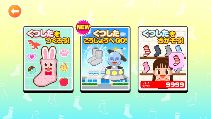 既存コンテンツ「くつしたをつくろう!」では、贈る相手が増え、エイリアンやプリンセスなどのキャラクターも登場。