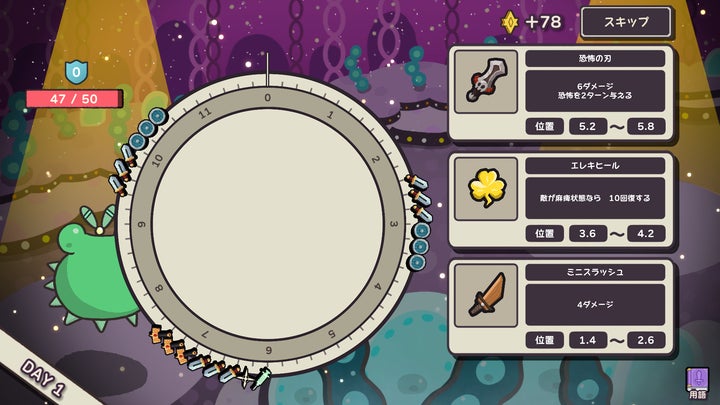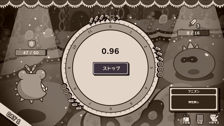 ゲームは、自分の体内時計を頼りに、戦略的に技を発動させていく。