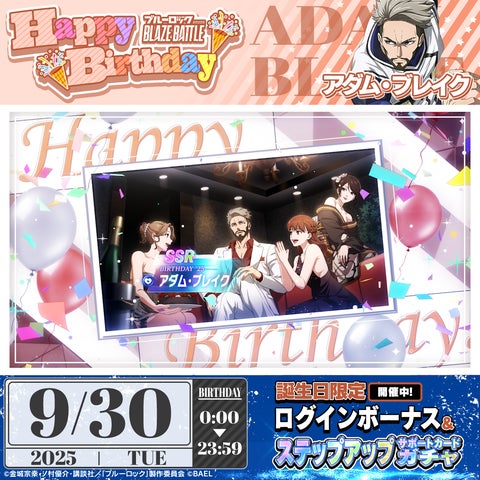 さらに、TVアニメ新シリーズ決定記念のガチャや期間限定イベント「ぶれいずすごろく」、アダム・ブレイクの誕生日記念ガチャも開催中。