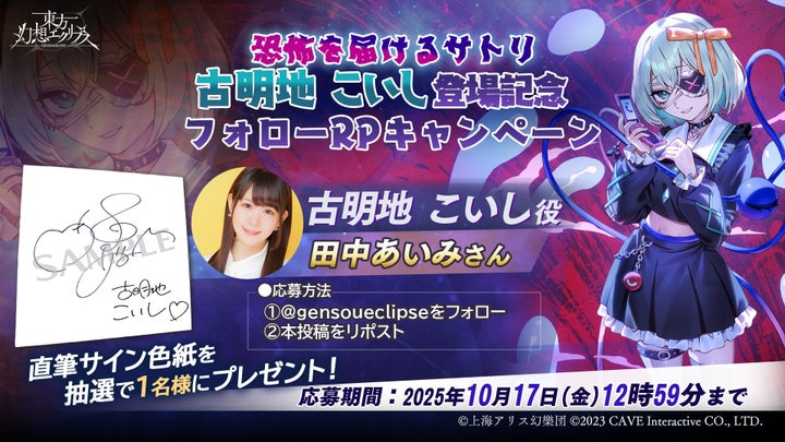 • 公式アカウントフォロー&リポストで声優サイン色紙プレゼントキャンペーン実施。