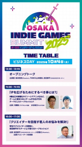 - 「OSAKA INDIE GAMES SUMMIT 2025」が10月4日(土)・5日(日)に開催。