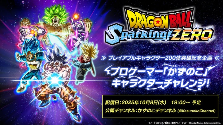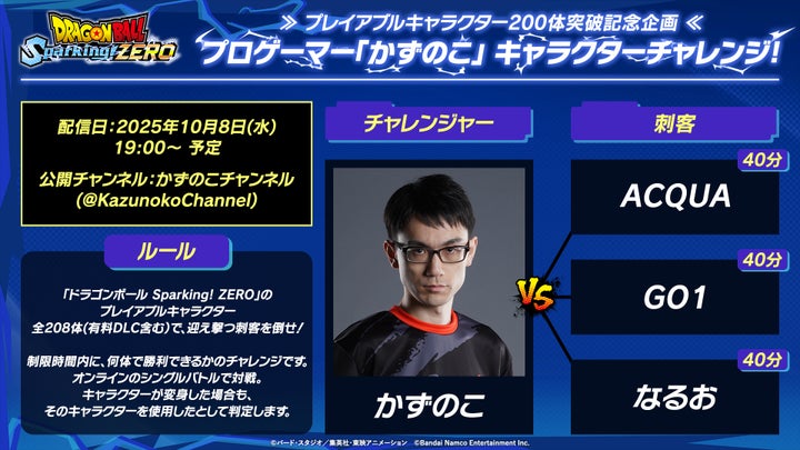 また、プロゲーマー「かずのこ」によるキャラクターチャレンジが、2025年10月8日(水)に配信決定。