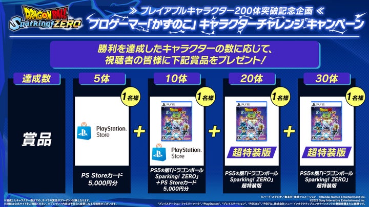 • プロゲーマー「かずのこ」によるキャラクターチャレンジが開催、視聴者プレゼントキャンペーンも実施。