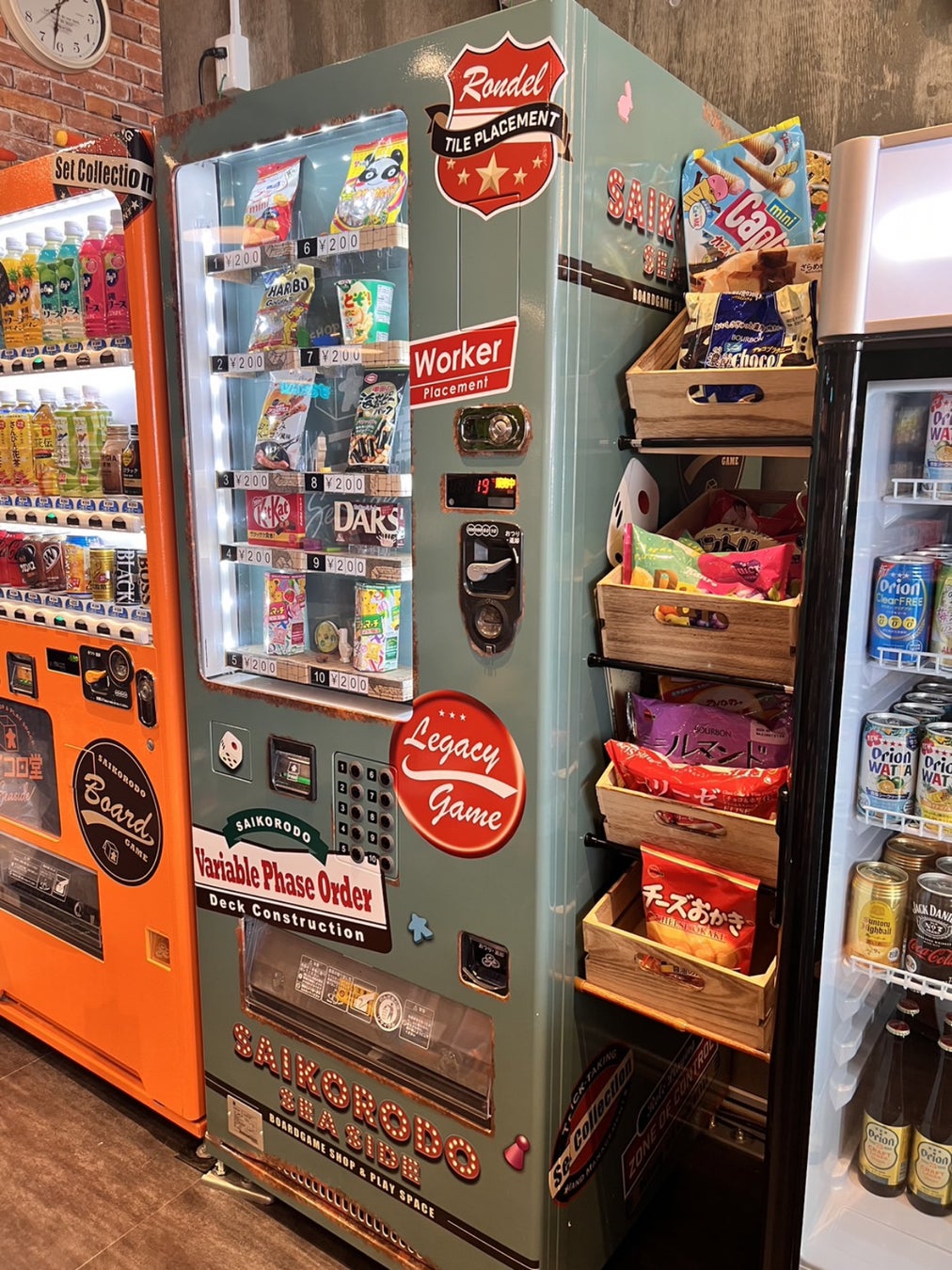 この自動販売機は、お客様がボードゲームを楽しみながら手軽にお菓子を購入できるようにするために設置されました。