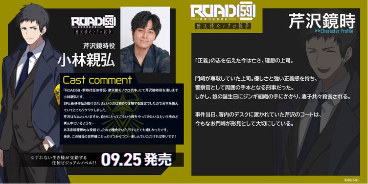 ブシロードは、ビジュアルノベルゲーム「ROAD59 -新時代任侠特区- 摩天楼モノクロ抗争」の発売を記念し、出演キャストの直筆サイン色紙が当たるキャンペーンを開催。