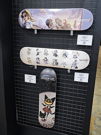 会場では、両作品の魅力的なイラストが来場者の目を引き、海外向けECサイトで販売中のスケートボードデッキも展示された。