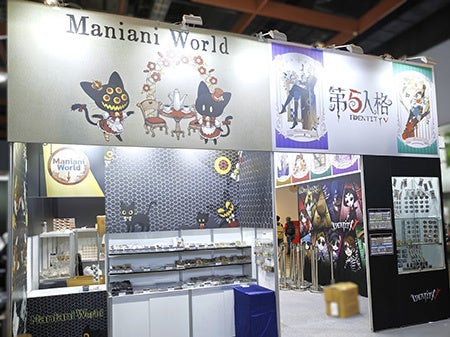 ブースでは、非対称対戦型マルチプレイゲーム『Identity V 第五人格』とオリジナルブランド『Maniani World』のグッズを展示・販売した。