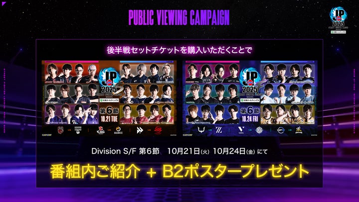 2025年10月7日から10月14日の期間中に後半節セットチケットを購入し、キャンペーンサイトから申し込むことで、第6節の番組内でパブリックビューイング実施店舗として紹介される。