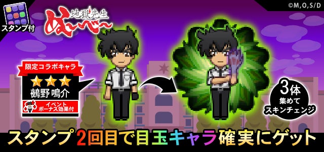コラボ期間中は、『地獄先生ぬ〜べ〜』のキャラクターがコラボスキンとして登場し、限定鬼「覇鬼」も出現する。