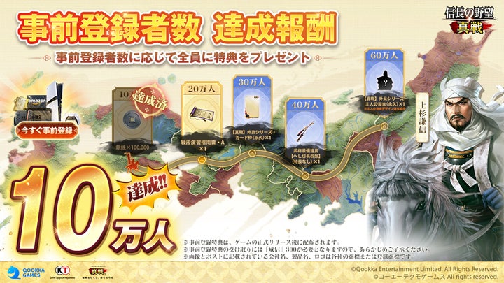 SLG×RPGの革新作『信長の野望 真戦』のRPGモード試遊も好評を博し、事前登録者数は10万人を突破。