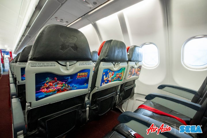 セガは、エアアジアとのコラボで特別塗装機「ソニック・ザ・ヘッジホッグ」号の機内デザインをリニューアル。