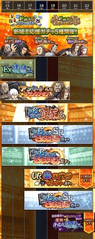 キャンペーンでは、パック販売、SRピックアップガチャ、UR秦国武将セレクトガチャ、ピックアップガチャ、復刻争覇戦★6追想ガチャなどが開催されます。