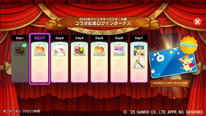 また、ログインボーナスとして、サンリオキャラクターズをテーマにした壁紙やブースターが配布される。