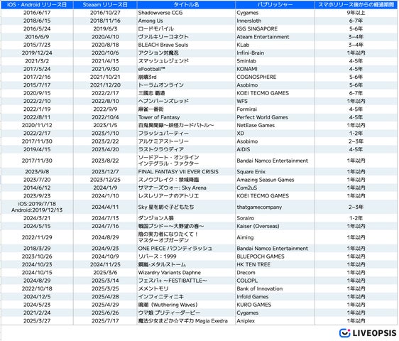 - スマホゲームのSteam移植事例をスパイスマートが調査。