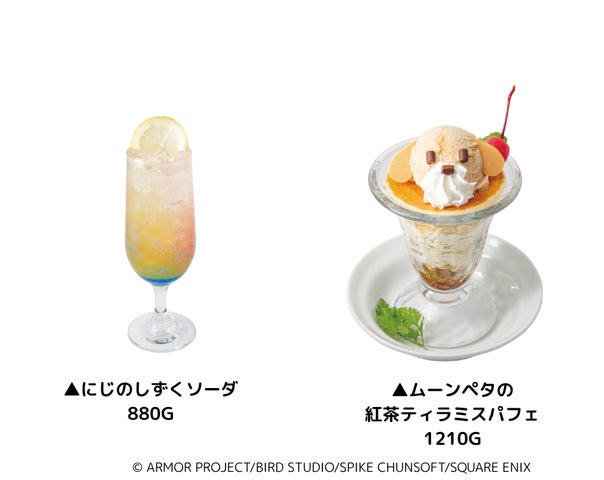 前期限定メニューとして「にじのしずくソーダ」と「ムーンペタの紅茶ティラミスパフェ」が登場。