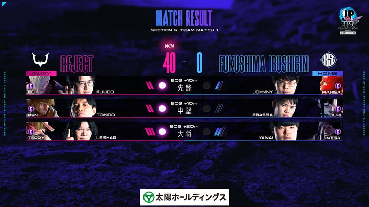 REJECT、広島 TEAM iXA、DetonatioN FocusMeが勝利しました。
