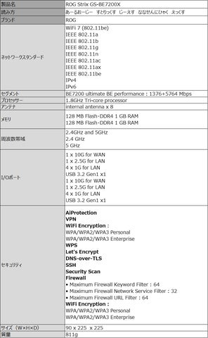 ASUS JAPAN株式会社から、次世代無線規格WiFi 7に対応したゲーミングルーター「ROG Strix GS-BE7200X」が2025年10月31日に発売される。