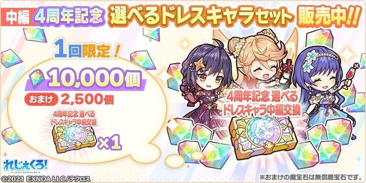 また、ドレス衣装の「マスター・サフィー」「ジル・ド・レ」「リトリー」が登場する4周年記念ドレスキャラガチャも開催中です。