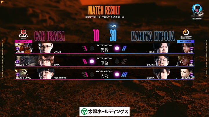 - 名古屋NTPOJAがCAG OSAKAに勝利し2位に浮上。