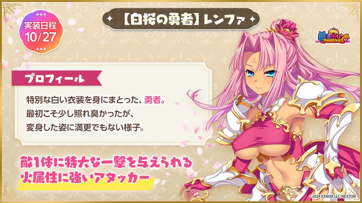 - 新キャラクター「カリン(白銀の魔王)」と「レンファ(白桜の勇者)」が登場。