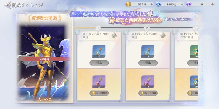 育成チャレンジも同時開催され、指定の条件をクリアすると豪華報酬を獲得できます。