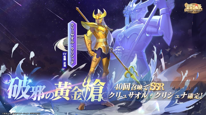 スマホRPG『聖闘士星矢 Galaxy Soldiers』にて、SSR「クリュサオル・クリシュナ」が登場する期間限定イベントが開催されます。