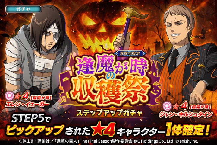 イベントに合わせて、【逢魔が時】ジャン・キルシュタインと【逢魔が時】エレン・イェーガーが登場するガチャも開催。