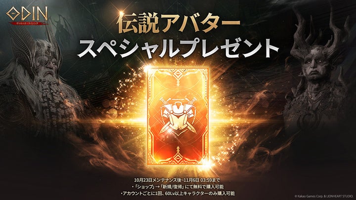 新クラス実装を記念し、全プレイヤーに「[伝説]アバター召喚券」をプレゼント。