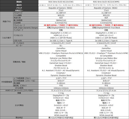 ASUS JAPAN株式会社から、世界初のTrueBlack光沢有機ELパネルを搭載した4K WOLEDゲーミングモニター「ROG Strix OLED XG32UCWMG」と「ROG Strix OLED XG32UCWG」が2025年10月31日に発売されます。