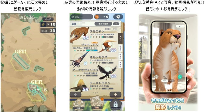 - ARコンテンツ、スマホ向けアプリゲーム、絶滅した動物、化石、発掘ゲーム、図鑑機能、AR体験、VR、AR、サービス、プレスリリース、ネットサービス・アプリ、スマートフォンアプリ、デジタル製品・家電、モバイル端末