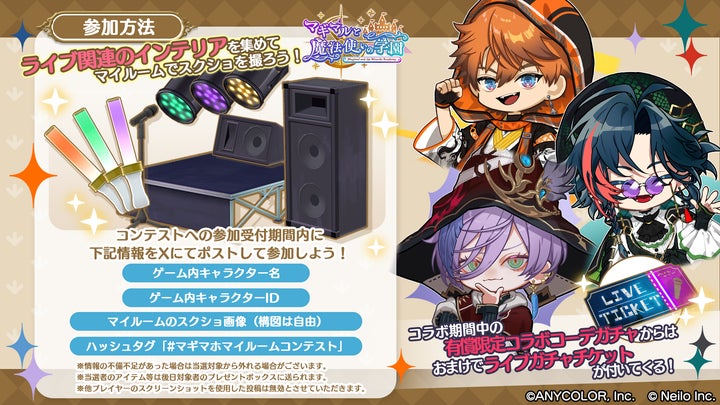 各VTuberのYouTubeチャンネルでのライブ配信も実施され、ゲーム内ではコラボアイテムを獲得できるイベントや、スクショコンテストも開催される。