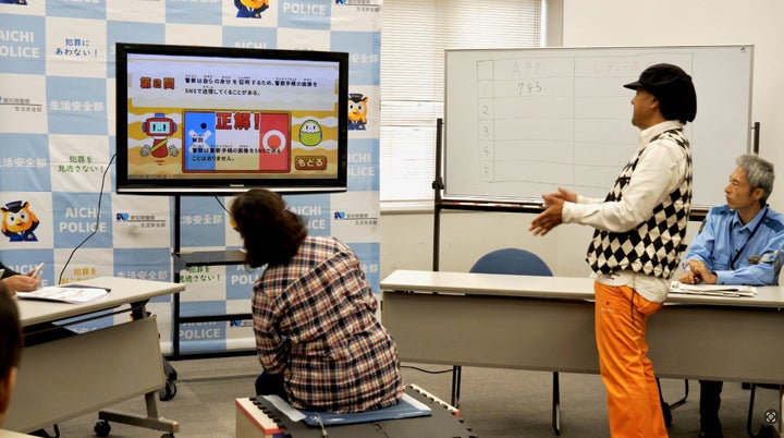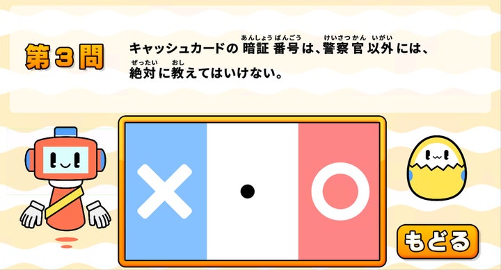 株式会社スピードが開発したこのゲームは、座った状態で重心を傾けてクイズに答えることで、楽しみながらバランス運動と特殊詐欺に関する知識を習得できる。