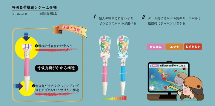 - 摂食嚥下リハビリを目的とした、吹き戻しとARゲームを融合。