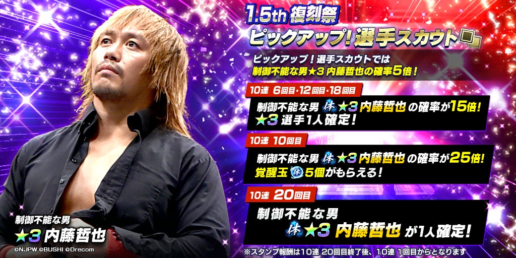 - 株式会社ブシロードと株式会社ドリコムが共同開発したスマートフォンゲームアプリ『新日本プロレスSTRONG SPIRITS』