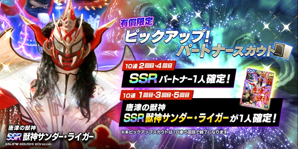 唐津の魅力を取り入れたSSRパートナー「[唐津の獣神]獣神サンダー・ライガー」が実装されました。