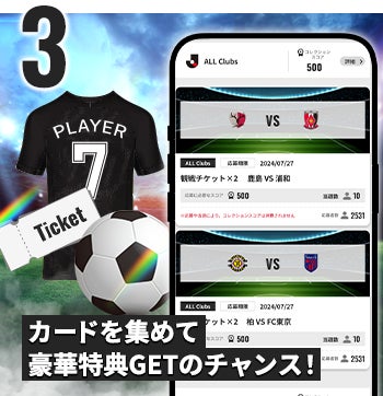 カードを集めることで、Jリーグアウォーズ参加券やサイングッズなどのリアルな特典に応募可能。