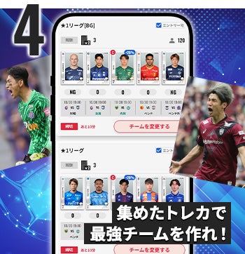 - 総勢約600名のJ1クラブ所属選手が登場するデジタルトレカで、コレクションとゲームを両立。